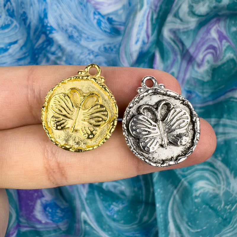 20mm Butterfly Pendant Hammered - Multiple Colors
