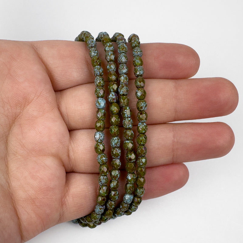 4mm Firepolish Amber Turquoise Picasso Czech 50 Bead Strand