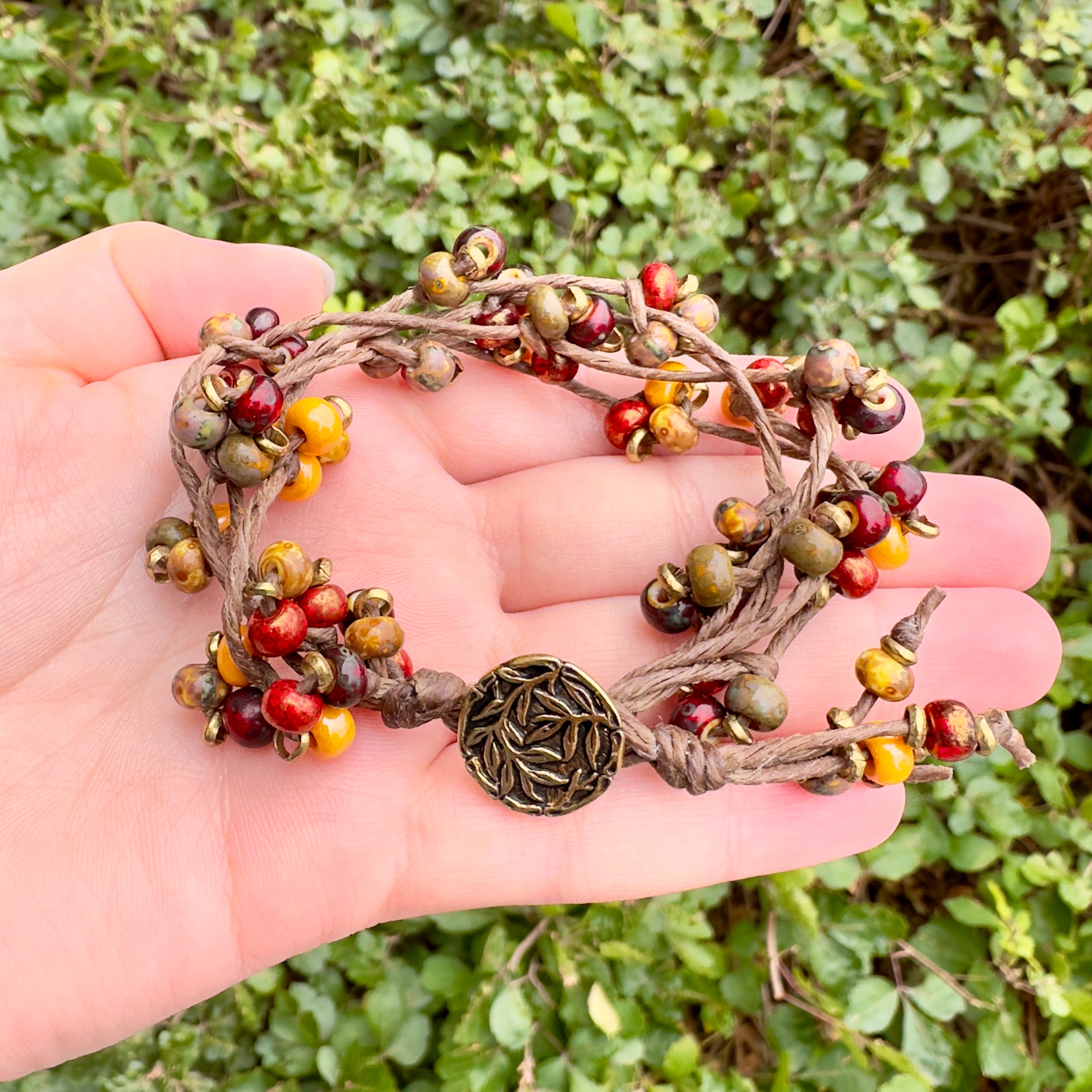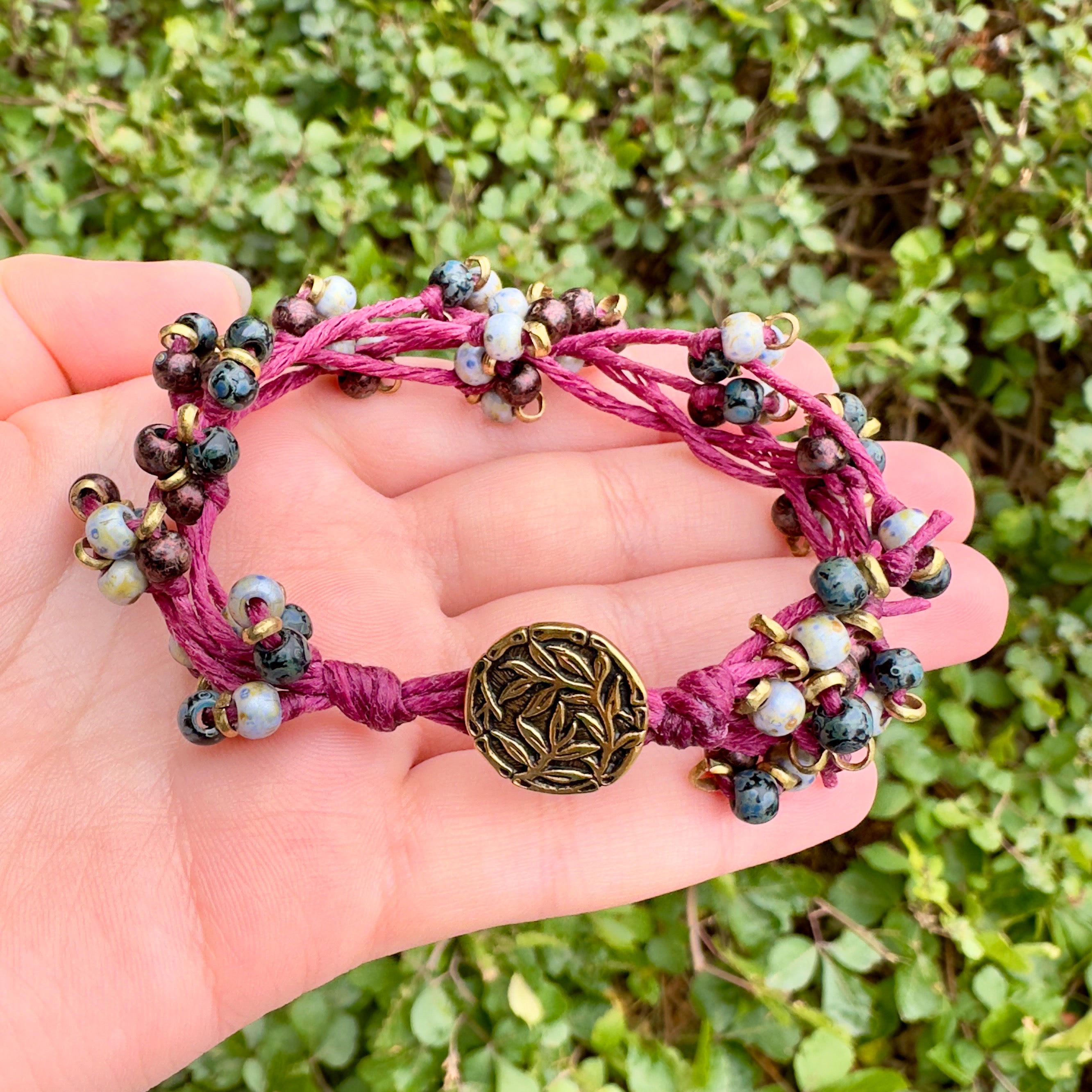 Join us for an exciting hands-on class where you’ll learn to make this Twining Vines Bracelet. Colleen will guide you through the process using wax cord, Czech glass beads, African metal beads, and a Tierracast button. Students have the option to make their bracelet in one of two colorways; Autumn Woods or Dusky Plum. Please select which colorway you would like to make at checkout.