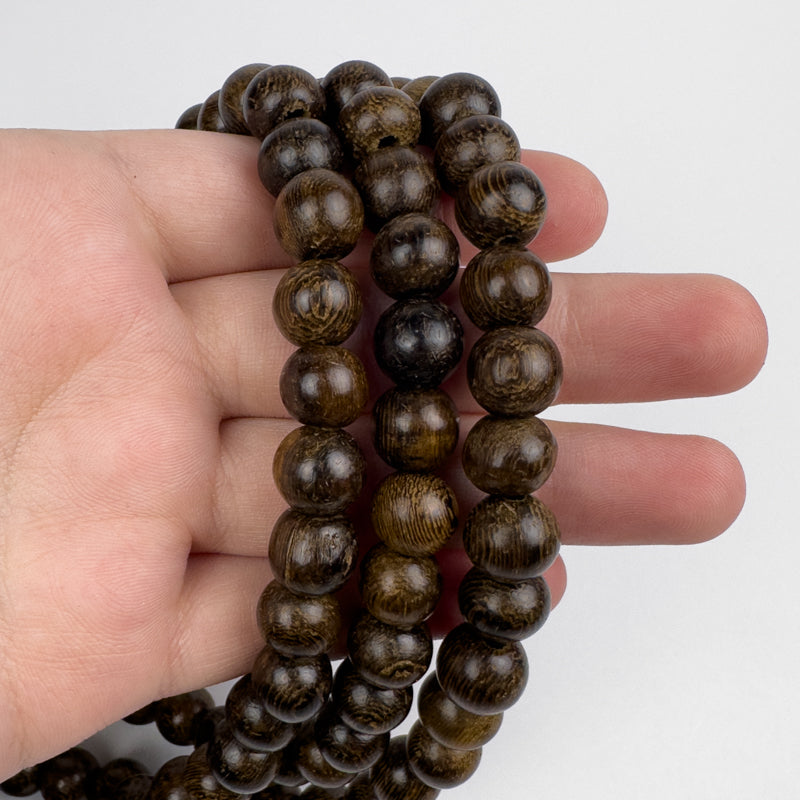 10.5mm Madres de Cacao (Dark) Wood Round 15.5in Strand